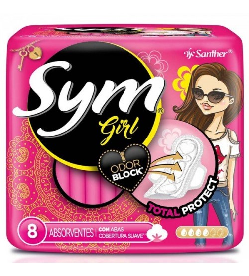 Absorvente Sym Girl Cobertura Suave Com Abas 8 Unidades