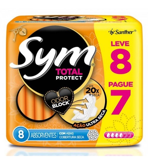 Absorvente Sym Cobertura Seca Com Abas Com 08 Unidades
